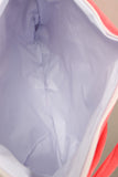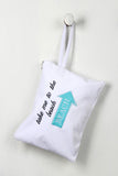 This bikini mini-bag features a soft furry material with "take me to the beach" and arrow embroidered detail at front, attached wrist strap, and anchor-detailed zipper at top. Finished with a waterproof lining.