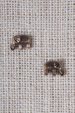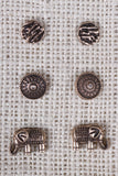 This earring set features three pairs of earrings, two round pairs with different designs etched on them and one pair of elephant earrings, with post backs.