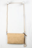 This darling crossbody clutch features a contrasting vegan leather stitching detail at front, removable crossbody strap, and top zip closure. Finished with one interior zipper pocket, detachable wristlet strap, and fabric lining. Shoulder strap has 22.5" Drop.