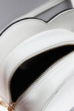 This lovely bag features a daisy-shaped silhouette, stitching detail on a long edge of face, top zip closure, and removable, adjustable vegan leather shoulder strap (23.5" drop).