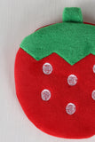 This adorable coin purse features a strawberry shape, top zipper closure, fuzzy fabrication, with a ball chain key-chain.