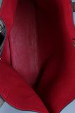 This simple tote bag features a vegan leather fabrication, no lining, single magnetic snap closure, stiff removable bottom, detachable zipper pouch, and a faux fur ball key-chain.
