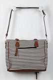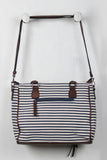 This festival ready tote bag features a embroidered panel, twill fabrication, stripe pattern, vegan leather trim, zippered top closure,fully lined, 1 inner zipper pocket and 2 open pockets, 1 outer zipper pocket, braided handles and a removable shoulder strap and a removable leather and chain charm.