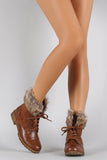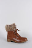 These self-tie booties feature a faux fur cuff. Constructed with a faux suede shaft, featuring an inner side zipper for easy on-off wear. Finished with a classic lug sole.