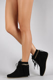 These boho-chic fringe decor at the opening, and razor-cut sole. Finished with cushioned insole, smooth interior lining, and lace up front closure.
