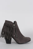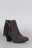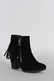 These western inspired cowgirl fringe design at the back, round toe silhouette, and chunky stacked heel. Finished with cushioned insole, soft interior lining, and side zipper closure for easy on/off.