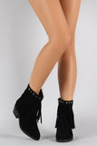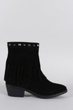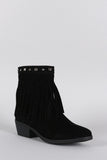 This western inspired fringe design at collar, and stacked heel. Finished with cushioned insole, smooth lining, and side zipper closure for easy on/off.