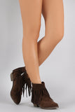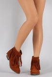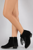 These cowgirl fringe detail at collar, stitching accents, and low stacked heel. Finished cushioned insole and soft interior lining for all day comfort. Side zipper closure for easy on/off.