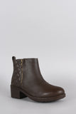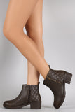 These ankle boots feature a round toe silhouette, zipper trim on side, back quilted design, and block heel. Finished with cushioned insole, smooth lining, and side zipper closure for easy on/off.