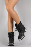 These cozy boots feature a warm faux shearling interior lining, round toe with decorative ridges across the front, top stitching accents, cushioned insole, and lace up closure.