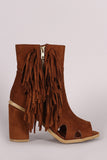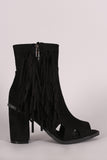 These chic fringe detailing at side, and chunky wrapped heel. Finished with cushioned insole, smooth lining, and side zipper closure for easy on/off.