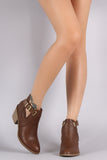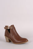 These fashion-forward ankle boots feature an almond toe silhouette, side cutout designs with buckle accents, and chunky stacked heel. Finished with cushioned insole and convenient back-zip closure.