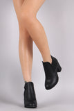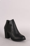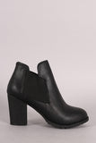 These stylish ankle boots feature a vegan leather upper with an elastic gore side panels, round toe silhouette, textured sole, and chunky heel. Finished with cushioned insole and easy pull-on construction.