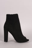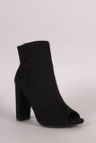 These booties features a vegan suede material, peep toe silhouette, and chunky vegan suede covered heel. Finished with a lightly padded insole and side zipper closure for easy on/off.