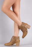 These cowgirl booties feature an almond toe silhouette, perforated design, and chunky stacked heel. Finished with a cushioned insole and rear zipper closure for easy on/off.