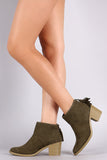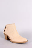 These booties feature a vegan suede upper, almond toe silhouette, stitching trim and design, and tassel-detailed rear zipper. Finished with a low stacked chunky heel and cushioned insole for comfort.