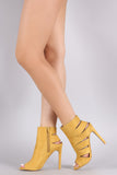 This stylish booties feature a peep toe silhouette, slash cutout design, center seam detail, and wrapped stiletto heel. Finished with a cushioned insole and side zipper closure for easy on/off.