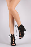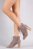 These stylish booties feature a perforated design upper, peep toe silhouette, lace-up front, and chunky stacked heel. Finished with a cushioned insole and rear zipper closure.