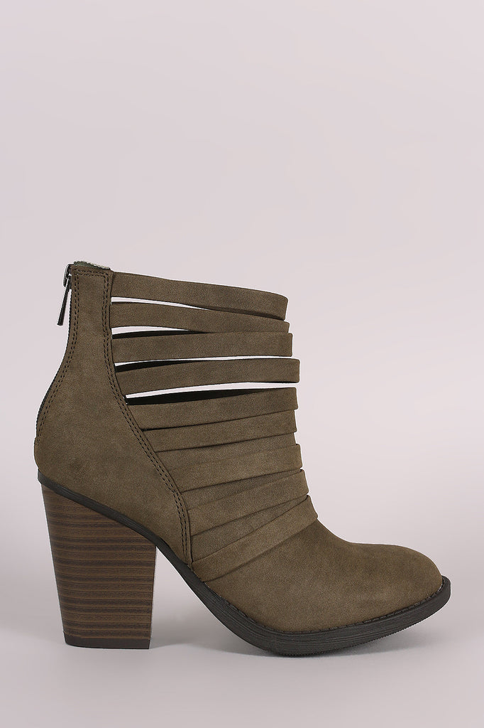These booties feature a strappy ankle cuff design, round toe silhouette, and chunky stacked heel. Finished with cushioned insole and rear zipper closure for easy on/off.