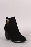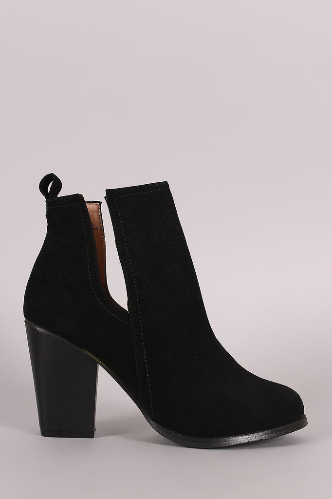 These chic booties feature a round toe silhouette, side cutout design, pull on tab at the back, and chunky stacked heel. Finished with cushioned insole for all day comfort.