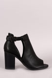 These chic booties feature a peep toe silhouette, side cutout design, adjustable ankle strap with buckle closure, and chunky stacked heel. Finished with cushioned insole for all day comfort.