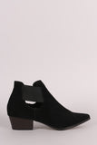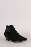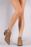 These western inspired booties feature a side cutouts design with elastic gore straps, pointy toe silhouette, and stacked block heel. Finished with a cushioned insole and pull-on construction.