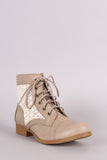 These pretty booties features a round cap toe silhouette, contrasting lace inset, block heel, and lace up front closure. Finished with a cushioned insole and smooth lining for comfort.