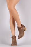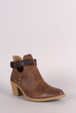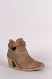 These fashion-forward ankle boots feature an almond toe silhouette, side cutout designs, contrast ankle strap with button accent, and blocky stacked heel. Finished with a cushioned insole for comfort.