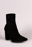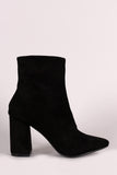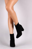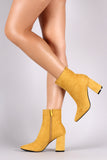 These casually chic booties feature a vegan suede upper with stitching detail, square toe silhouette, and wrapped chunky heel. Finished with a side zipper fastener and lightly cushioned insole for comfort.