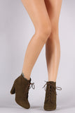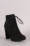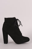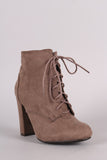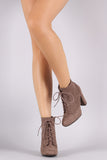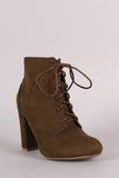 Bamboo Lace Up Fur Lined Chunky Heel Ankle Bootie
