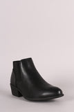 These trendy ankle booties features a wrap around elastic gore, faux leather fabrication, soft faux fur lining, low textured chunky heel, almond toe, slightly padded insole for comfort, and a side zipper for easy on/off.
