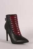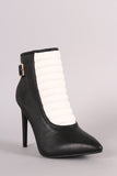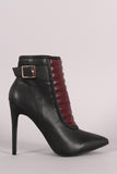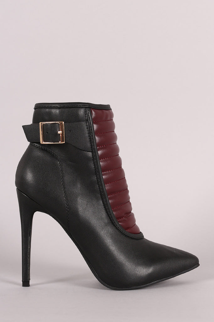 These stunning pointy toe silhouette, quilted patterned design at front, buckle strap detail, and wrapped stiletto heel. Finished with cushioned insole, smooth lining, and side zipper closure for easy on/off.