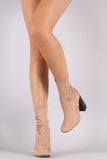 These fashionable ankle boots features a soft vegan suede upper and chunky stacked heel. Finished with a cushioned insole and side zipper closure for easy on/off.