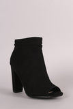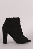These trendy ankle boots feature a slouchy shaft design, peep toe silhouette, and chunky wrapped heel. Finished with a cushioned insole, soft faux fur lining, and side zipper closure for easy on/off.