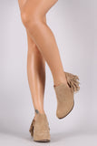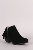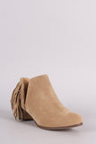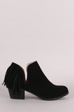 These chic ankle boots feature a layered fringe detailing at the back, rounded toe, side cutout design, and blocky stacked heel. Finished with a cushioned insole and easy pull-on construction.