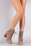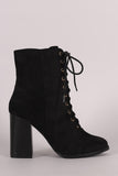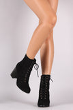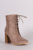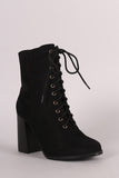These ankle boots are combat style, featuring a lace up front and an adjustable side zipper. Lightly padded lining. Finished on a chunky stacked heel.