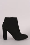 This western inspired chunky heel booties features an almond toe design, center stitched details, and side zip closure. Finished with a cushioned insole and soft faux fur lining.