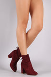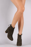 These ankle boots feature a stretchy fitted shaft with an adjustable drawstring. Round toe. Finished on a chunky heel.