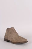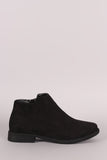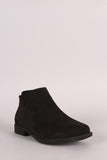 These chic ankle boots feature a soft vegan suede upper, high low collar, rounded toe silhouette, and low flat heel. Finished with a cushioned insole, soft faux fur lining, and side zipper closure for easy on/off.