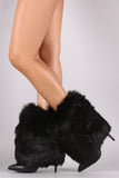 These cozy pointy toe silhouette, fold down faux fur shaft, and stiletto heel. Finished with a cushioned insole, smooth lining, and easy pull-on construction.