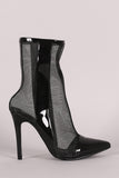 These stunning ankle boots feature a pointy toe silhouette, sheer mesh with shiny patent trims, and wrapped stiletto heel. Finished with a lightly padded insole and size zipper closure for easy on/off.