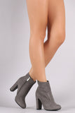 These booties features an almond toe design, stitching accents, and side zip closure. Finished with a cushioned insole and soft faux fur lining.