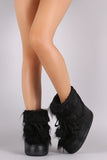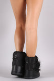 These warm and stylish boots features a vegan leather/nylon upper, decorative faux fur trims, cushioned insole, and foam insulation keeps you warm. Easy pull-on style with wraparound pom pom lace-up closure.