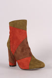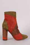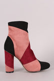 These trendy ankle boots feature a soft vegan suede with colorblock design, stitching accents, and architectural round heel. Finished with a cushioned insole, smooth lining, and side zipper closure for easy on/off.