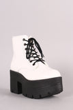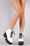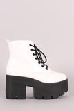These ankle boots feature a rounded toe, lace up front, lug sole, and chunky platform heel. Finished with a cushioned insole, smooth lining, and side zipper closure for easy on/off.