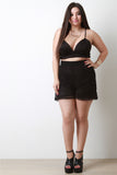 These high waist plus size mesh shorts feature an elastic waistband, double layer with a solid under layer and a fishnet design fabric overlay. Accessories sold separately. Made in U.S.A. 100% Polyester. Contrast: 100% Cotton. Lining: 100% Polyester.