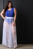 This sheer plus size skirt features a soft tulle fabrication, pleated design, elastic waistband, and a maxi length hemline. Accessories sold separately. Made in U.S.A. 100% Polyester.