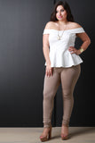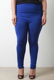 These plus size leggings features a soft knit fabrication, high waisted texture design, and taper cut fit. Accessories sold separately. 65% Polyester, 20% Cotton, 15% Spandex.