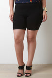 These plus size shorts feature a stretchy jersey knit, elasticized waistband, and solid hue. Accessories sold separately. Made in U.S.A. 95% Cotton, 5% Spandex.