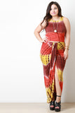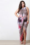 This plus size maxi skirt features an asymmetrical tulip constructed front, mini length skirt underlay, and tie dye print on soft jersey knit fabrication. Accessories sold separately. Made in U.S.A. 95% Rayon, 5% Spandex.